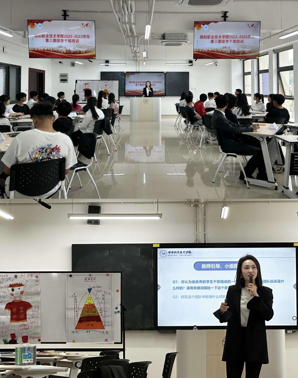 4月12日下午,由校团委主办,澳门太阳集团6138和电子与信息学院共同承办的2022-2023学年第三期全校团学干部培训在孵化楼4-04教室举行。培训由公司党总支副书记、BCC全球生涯教练佘洋燕主讲。校团委、校员工会全体员工干部、二级学院部分员工干部代表参加本次培训。